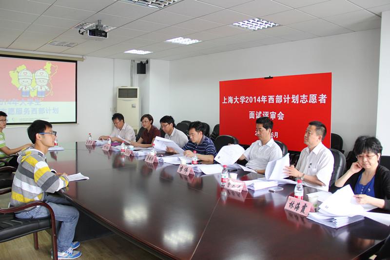 6月4日下午1:30,我校2014年西部志愿者面试评审会在校本部A404举行。校党委副书记鲁雄刚,校长助理、研究生工作党委书记李伟,纪委副书记兼监察处处长吴仲钢,党委组织部副部长、党校常务副校长曹为民,招毕办常务副主任叶红,学工办主任林海霞,社区学院党委书记、社区管理部主任王军华担任评委,对17名志愿者候选人进行了面试。