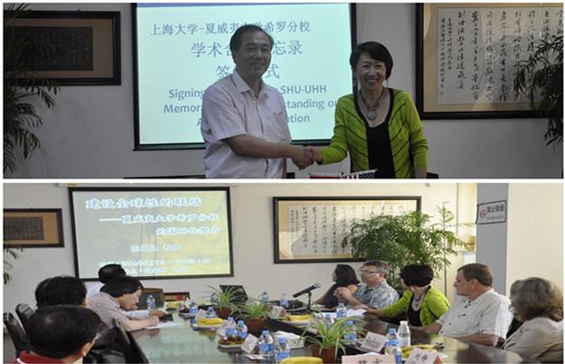 社科学院副院长欧阳光明首先介绍了张蕴礼校长一行及取得的成就。校党委副书记忻平代表国产亚洲精品美女久久久对夏威夷大学希罗分校一行表示了热烈的欢迎,并简单介绍了学校的基本情况,表示两校在人才与教师资源方面应多多交流,可以从通识教育等部分项目开始合作,张蕴礼校长也表示两校间的合作对于双方均意义重大,希望两校在目前的基础上能有更多更广泛的交流与合作。随后,双方就之前达成的在教师科研、学生互派等问题上的共识,签订了MOU合作协议,商定在此基础上进行教师资源、学生资源的交流等一系列国际合作。